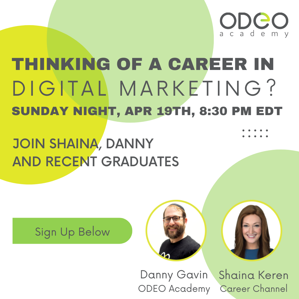 - Live panel with recent graduates of ODEO Academy’s frum women’s track who have found a fulfilling and flexible career in digital marketing